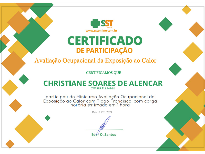 Conclusão do minicurso sobre avaliação ocupacional da exposição ao calor, com ênfase em protocolos de segurança e saúde do trabalhador. sst Avaliação Ocupacional da Exposição ao Calor 2024